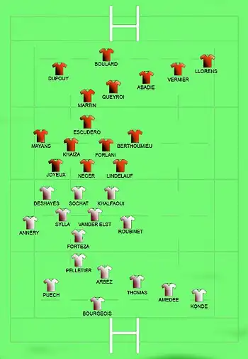 | Essai(s) : 5 Transformation(s) : 4 Pénalité(s) : 1 Carton(s) jaune(s) : 1 |
