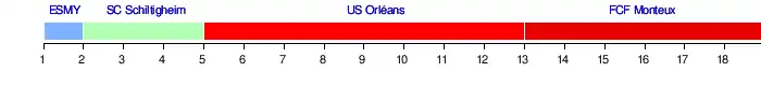 | SC Schiltigheim | 2 | 1 | 1 | 1 | 3 | 3 | 4 | 3 | 3 | 3 | 3 | 3 | 3 | 3 | 3 | 3 | 3 | 3 |