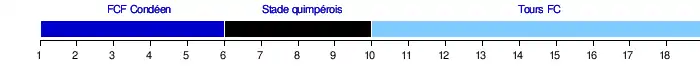 | Stade quimpérois | 3 | 2 | 2 | 2 | 2 | 1 | 1 | 1 | 1 | 3 | 3 | 3 | 3 | 5 | 5 | 5 | 4 | 3 |