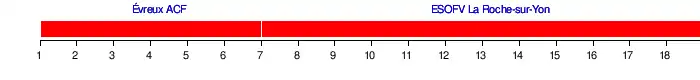 | Évreux ACF | 1 | 1 | 1 | 1 | 1 | 1 | 3 | 3 | 2 | 2 | 2 | 2 | 3 | 3 | 3 | 3 | 3 | 3 |