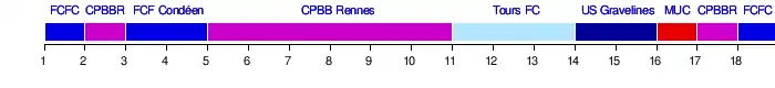 | CPBB Rennes | 2 | 1 | 2 | 2 | 1 | 1 | 1 | 1 | 1 | 1 | 3 | 4 | 4 | 5 | 4 | 3 | 1 | 4 |