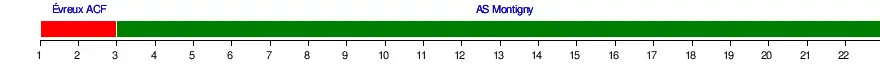 | Évreux ACF | 1 | 1 | 3 | 2 | 2 | 4 | 3 | 2 | 3 | 2 | 3 | 3 | 3 | 2 | 3 | 4 | 6 | 6 | 6 | 6 | 6 | 6 |
