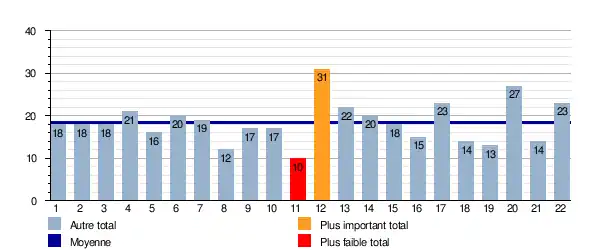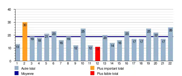 | VGA Saint-Maur | 5 | 7 | 5 | 8 | 7 | 4 | 4 | 5 | 7 | 4 | 6 | 5 | 5 | 5 | 5 | 6 | 7 | 7 | 6 | 6 | 5 | 6 |