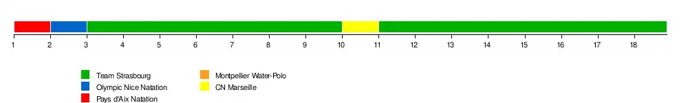 | Pays d'Aix Natation | 1 | 3* | 4 | 4 | 3 | 2 | 2 | 2 | 3 | 3 | ||||||||||