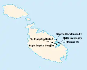 L'île de Malte étant relativement petite, les clubs évoluent tous au stade National Ta'Qali (17 400 places). Certains cependant ont leur propre enceinte qu'ils peuvent éventuellement utiliser.