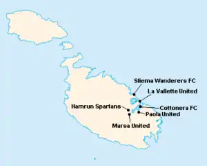 L'île de Malte étant relativement petite, les clubs évoluent tous au stade National Ta'Qali (17 400 places). Certains cependant ont leur propre enceinte qu'ils peuvent éventuellement utiliser.