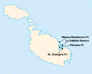 L'île de Malte étant relativement petite, les clubs évoluent tous au stade National Ta'Qali (17 400 places). Certains cependant ont leur propre enceinte qu'ils peuvent éventuellement utiliser.