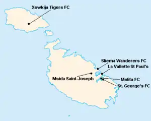 L'île de Malte étant relativement petite, les clubs évoluent tous au stade National Ta'Qali (17 400 places). Certain cependant ont leur propre enceinte qu'ils peuvent éventuellement utiliser.