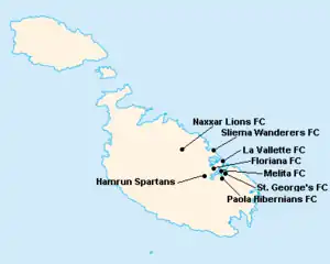 L'île de Malte étant relativement petite, les clubs évoluent tous au stade National Ta'Qali (17 400 places). Certain cependant ont leur propre enceinte qu'ils peuvent éventuellement utiliser.