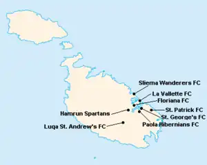 L'île de Malte étant relativement petite, les clubs évoluent tous au stade National Ta'Qali (17 400 places). Certain cependant ont leur propre enceinte qu'ils peuvent éventuellement utiliser.