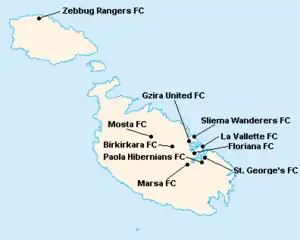 L'île de Malte étant relativement petite, les clubs évoluent tous au stade National Ta'Qali (17 400 places). Certain cependant ont leur propre enceinte qu'ils peuvent éventuellement utiliser.