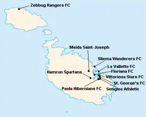 L'île de Malte étant relativement petite, les clubs évoluent tous au stade National Ta'Qali (17 400 places). Certain cependant ont leur propre enceinte qu'ils peuvent éventuellement utiliser.