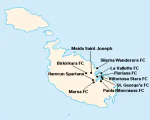 L'île de Malte étant relativement petite, les clubs évoluent tous au stade National Ta'Qali (17 400 places). Certain cependant ont leur propre enceinte qu'ils peuvent éventuellement utiliser.