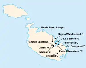 L'île de Malte étant relativement petite, les clubs évoluent tous au stade National Ta'Qali (17 400 places). Certain cependant ont leur propre enceinte qu'ils peuvent éventuellement utiliser.
