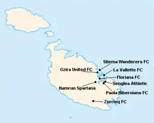 L'île de Malte étant relativement petite, les clubs évoluent tous au stade National Ta'Qali (17 400 places). Certain cependant ont leur propre enceinte qu'ils peuvent éventuellement utiliser.