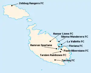 L'île de Malte étant relativement petite, les clubs évoluent tous au stade National Ta'Qali (17 400 places). Certain cependant ont leur propre enceinte qu'ils peuvent éventuellement utiliser.
