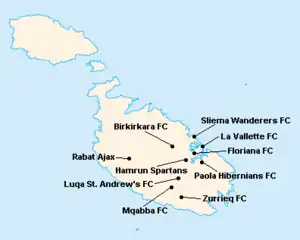 L'île de Malte étant relativement petite, les clubs évoluent tous au stade National Ta'Qali (17 400places). Certain cependant ont leur propre enceinte qu'ils peuvent éventuellement utiliser.