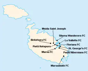L'île de Malte étant relativement petite, les clubs évoluent tous au stade National Ta'Qali (17 400 places). Certain cependant ont leur propre enceinte qu'ils peuvent éventuellement utiliser.