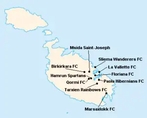 L'île de Malte étant relativement petite, les clubs évoluent tous au stade National Ta'Qali (17 400 places). Certain cependant ont leur propre enceinte qu'ils peuvent éventuellement utiliser.
