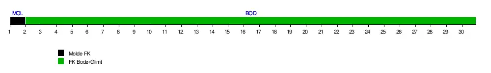 | Molde FK | 1 | 2 | 2 | 2 | 2 | 2 | 2 | 2 | 2 | 2 | 2 | 2 | 2 | 2 | 2 | 2 | 2 | 2 | 4 | 3 | 2 | 2 | 2 | 2 | 2 | 2 | 2 | 2 | 2 | 2 | 1 | 0 |