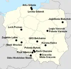 Cette saison, seulement deux clubs, le Korona Kielce et le Zagłębie Lubin, ont été promus. Ils remplacent le ŁKS Łódź, relégué administrativement, et le Górnik Zabrze, bon dernier l'année précédente.