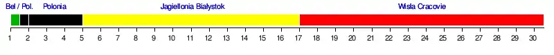 Après un mano à mano avec le Jagiellonia Białystok, c'est le Wisła Cracovie qui a gagné son treizième titre, officialisé après la vingt-septième journée et le derby contre le Cracovia.
