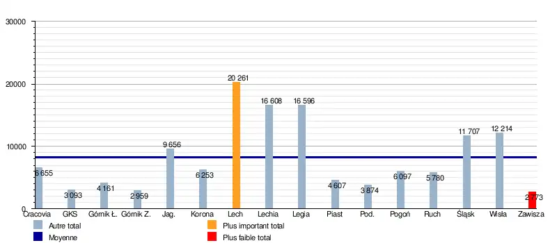 - (pl) Affluences moyennes sur ekstraklasa.org. Consulté le 24 mai 2015.