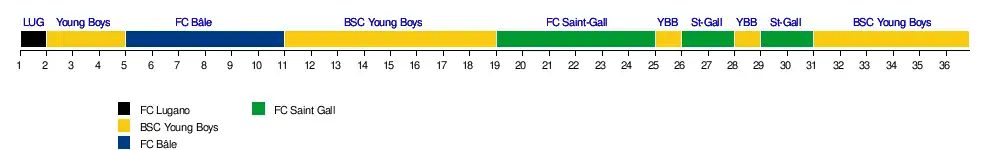 | Young Boys | 6 | 3 | 1 | 1 | 1 | 2 | 3 | 2 | 2 | 2 | 2 | 1 | 1 | 1 | 1 | 1 | 1 | 1 | 1 | 2 | 2 | 2 | 2 | 2 | 2 | 1 | 2 | 2 | 1 | 2 | 2 | 1 | 1 | 1 | 1 | 1 | 18 | ||