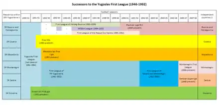 Le championnat de la République fédérale de Yougoslavie, mis en place dès 1992, est considéré par l'UEFA comme le successeur officiel du championnat yougoslave. Celui-ci devient en 2003 le championnat de la Serbie-et-Monténégro jusqu'à la dissolution du pays en 2006. C'est par la suite le championnat serbe qui lui succède.