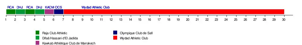 | Wydad AC | 1-0 | 3-2 | 6-1 | 3-0 | 3-0 | 2-1 | 2-2 | 3-1 | 2-1 | 2-0 | 4-1 | 1-0 | 2-2 | 3-0 | 0-0 | |