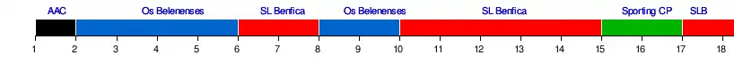 | SL Benfica | 2-1 | 4-2 | 5-2 | 3-1 | 6-2 | 12-2 | 8-3 | 7-1 | 3-0 | |