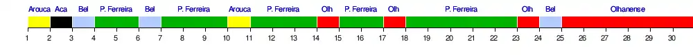 | Résultats (▼dom., ►ext.) | Aca | Aro | Bel | Ben | Bra | Est | Gil | Mar | Nac | Olh | P.Fer | Por | Rio | Spo | V.Gui | V.Set |