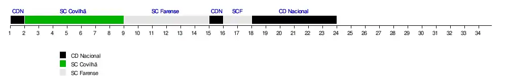 | SC Covilhã | 4 | 1 | 1 | 1 | 1 | 1 | 1 | 1 | 2 | 3 | 5 | 6 | 7 | 8 | 6 | 3 | 4 | 4 | 5 | 6 | 7 | 8 | 9 | 11 | ||||||||||