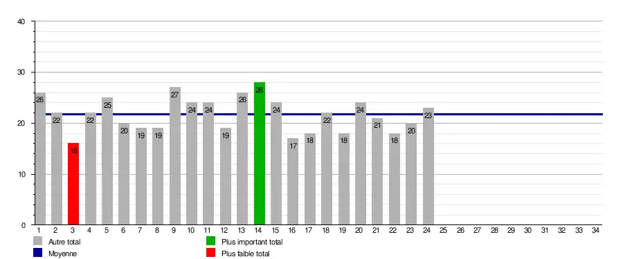 | Résultats (▼dom., ►ext.) | Aca | AcV | BenB | CaP | Cha | CdP | Cov | Est | Far | Fei | Lei | Maf | Nac | Oli | Pen | PorB | Var | Vil |