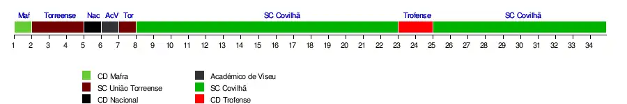 | SC Covilhã | 5 | 12 | 10 | 13 | 12 | 15 | 17 | 18 | 18 | 18 | 18 | 18 | 18 | 18 | 18 | 18 | 18 | 18 | 18 | 18 | 18 | 18 | 18 | 17 | 17 | 18 | 18 | 18 | 18 | 18 | 18 | 18 | 18 | 18 |