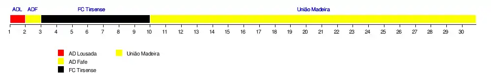 | AD Camacha | 4 | 12 | 14 | 12 | 11 | 9 | 12 | 8 | 6 | 5 | 5 | 5 | 5 | 5 | 5 | 4 | 5 | 4 | 4 | 5 | 5 | 5 | 5 | 7 | 4 | 4 | 5 | 8 | 9 | 9 |