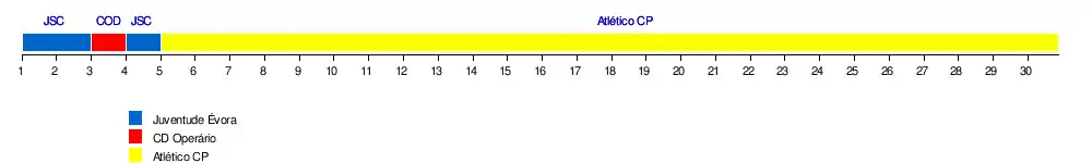 | Atlético CP | 2 | 2 | 2 | 3 | 1 | 1 | 1 | 1 | 1 | 1 | 1 | 1 | 1 | 1 | 1 | 1 | 1 | 1 | 1 | 1 | 1 | 1 | 1 | 1 | 1 | 1 | 1 | 1 | 1 | 1 |
