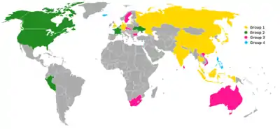 Les nations sont classées en plusieurs groupes en additionnant les points obtenus au classement mondial par les joueurs qui composent les équipes.
