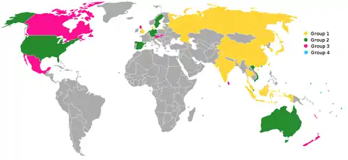 Le 4 avril, après le tirage au sort, l'équipe d'Angleterre annonce son forfait pour des raisons financières[6],[7]. De fait, les groupes sont réorganisés : l'Allemagne est promue dans le groupe 1, la Nouvelle-Zélande dans le groupe 2 et le groupe 3 sera constitué de 7 équipes réparties en deux sous-groupes de 3 et 4 nations[8].
