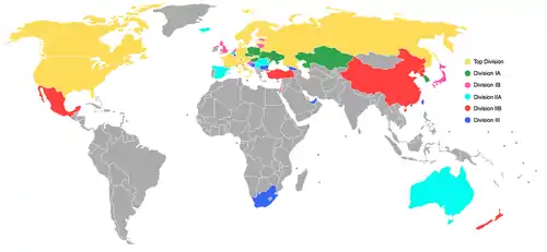 Le groupe principal regroupe 16 équipes, réparties en deux groupes (entre parenthèses le classement IIHF).
