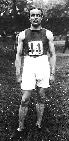 Jacques Vetillard, champion de France en 1917 des 110 mètres haies et saut en hauteur (ici aux 110 mètres haies des Critériums Nationaux militaires de 1919).