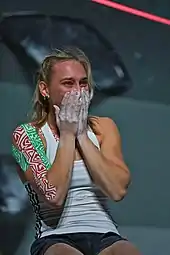 Janja Garnbret aux championnats du monde d'escalade de 2018.