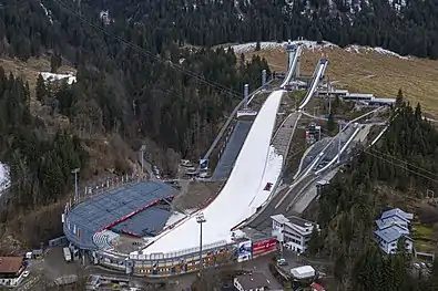 - Les Tremplins de Schattenberg sont le site des épreuves de sauts. Construits en 1925 et rénovés en 2003 et 2011, ils accueillent tous les ans la première étape de la tournée des quatre tremplins, faisant partie de la coupe du monde de saut à ski.