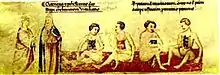 Dante se dirige ensuite vers la troisième catégorie de damnés dans le cercle des violents contre Dieu et contre nature. Il a déjà rencontré un blasphémateur (Capanée), plusieurs sodomites (Brunetto Latini et les trois Florentins), mais toujours pas d'usuriers, c'est-à-dire aucun de ces violents contre la nature et l'art, qui, comme l'explique le Chant XI, ne tirent leur gain ni de la sueur ni de l'esprit, mais de l'argent lui-même[1]. Ils sont à mi-chemin entre le châtiment des violents contre Dieu (couchés sur le sol, sous la pluie de feu), le pire, et celui des sodomites (courant avec agitation sous la pluie de flammes), le plus doux. En effet, ils doivent s'asseoir et, avec leurs mains, s'éventer et tenter sans cesse d'éteindre les flammes qui viennent de tomber. Dans cette activité, Dante les compare aux chiens qui se grattent avec leurs pattes pour éloigner les morsures « soit de puces, soit de mouches, soit de taons », un sentiment répugnant souligné par la comparaison avec les animaux. De plus, Dante note qu'ils portent chacun un sac autour du cou avec des motifs, ce qui fait probablement allusion aux sacs que les prêteurs et les changeurs de monnaie portaient autour du cou lors de leurs transactions commerciales et qui les distinguaient avec leurs livres de comptes. Sur ces sacs sont imprimés les blasons familiaux, que Dante utilise pour désigner les familles d'usuriers, plutôt que les pécheurs individuels. Il n'indique pas leurs noms, mais les armoiries de l'époque devaient une référence claire.