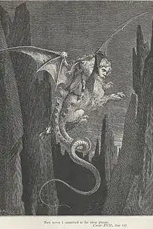 - En réalité Dante ne mentionne pas d'ailes et la queue est décrite comme similaire à celle d'un scorpion.