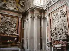 Le mur de gauche abrite un cénotaphe de Pietro Corsini, évêque de Volterra et de Florence, décédé à Avignon en 1405. Sur le mur au-dessus, se trouve un autre haut-relief de Foggini, avec L'Apparition de la Vierge à saint Andrea Corsini (1683-1691), lors de sa première messe, au couvent de la Selve près de Signa.