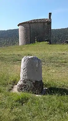 La base d’une borne milliaire romaine est visible non loin de la chapelle. À l’origine elle était encore plus proche, au pied de la croix où elle a été retrouvée placée à l’envers, une cavité ayant été creusée dans son socle pour faire un bénitier.
