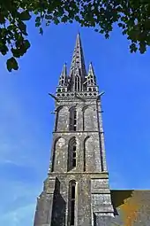 En effet, le clocher était originellement étayé à sa gauche par un arc triomphal, supprimé au cours des années 1830 et qui, donnant accès au cimetière, joignait la maison Ar Presbytal. Au sud, le clocher était mitoyen de la maison du Gouverneur qui disparut dès 1825. La destruction progressive de son environnement architectural compromis la stabilité de l'ouvrage. Ébranlées par une tempête le [7], la flèche et la partie supérieure de la tour durent finalement être démontées de 1837 à 1841. Le clocher ne fut reconstruit qu'à partir de 1881 par l'entrepreneur quimperois Jean-Louis Le Naour, après que le corps de l'édifice ait été restauré de 1875 à 1877[8].