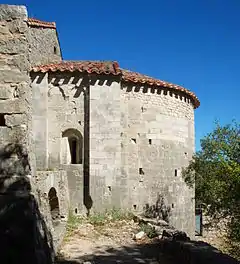 L'édifice possède un chevet roman constitué d'une abside semi-circulaire sans autre ornementation qu'une fenêtre absidiale unique à triple ébrasement et arc torique.