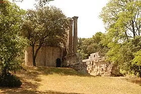 Au XIe siècle, une chapelle romane fut adossée au temple, dont elle réutilise partiellement le mur oriental.